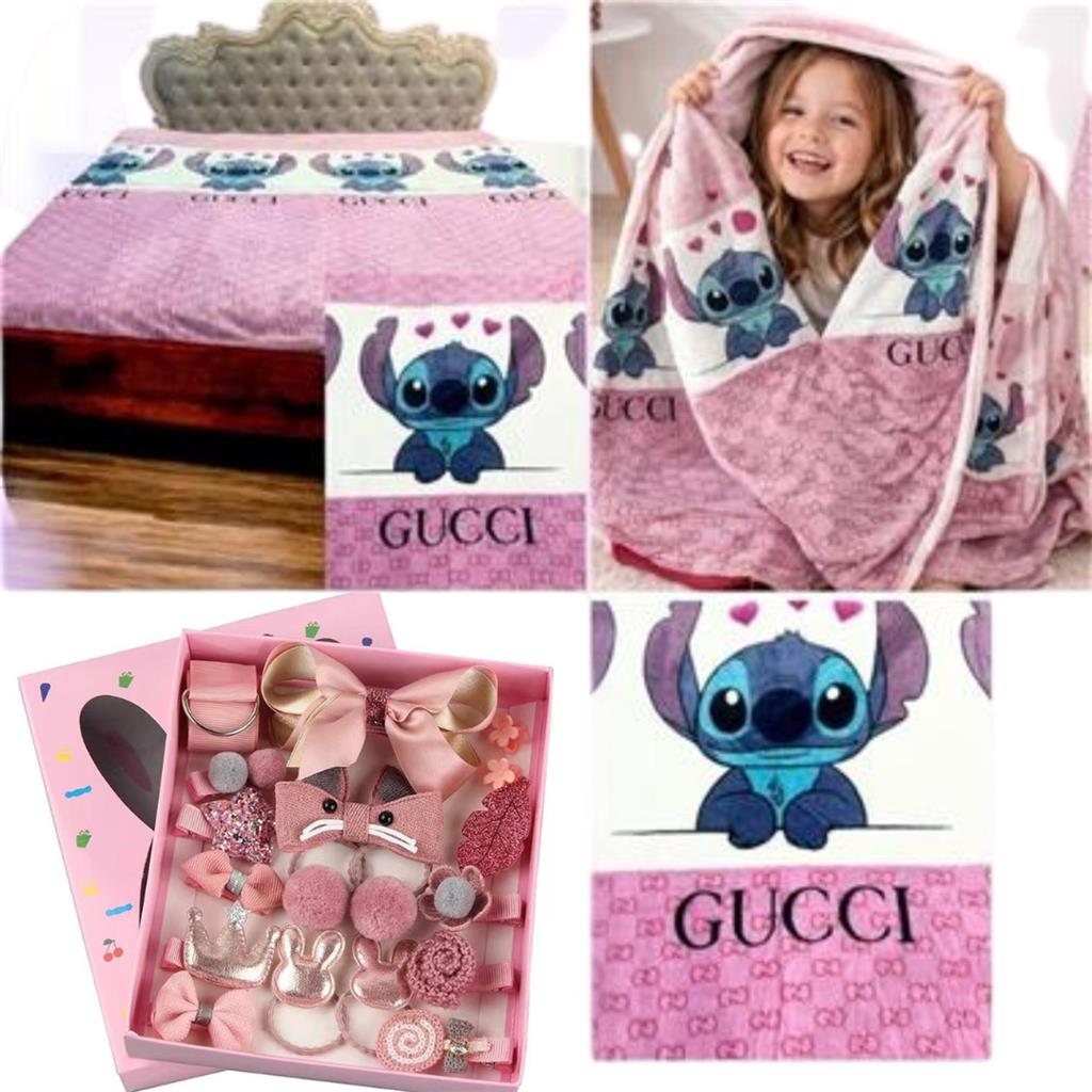 / Princess Designer King Size Blanket Collection (Pink Stitch Gucci) + Free Hair Accessory Kit